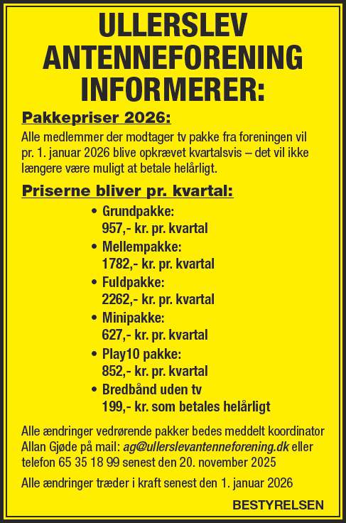 Fra den 01-01-2026 overgår vi i foreningen til kun at have kvartalsbetaling.