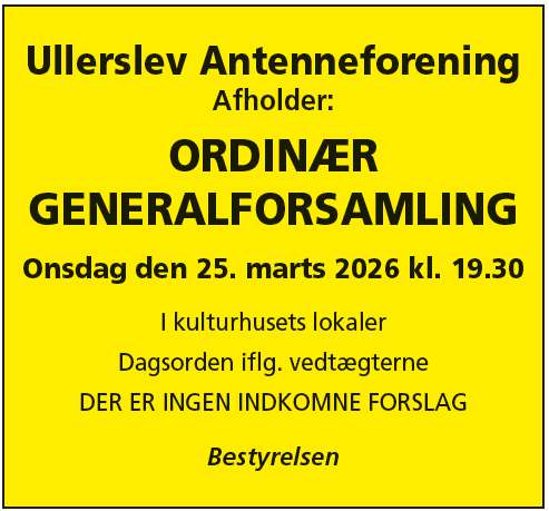 På denne side, vil der for fremtiden være mulighed for, at se vigtig information som vedrører Ullerslevs antenneforenings medlemmer. Nye priser, Generalforsamling mm.